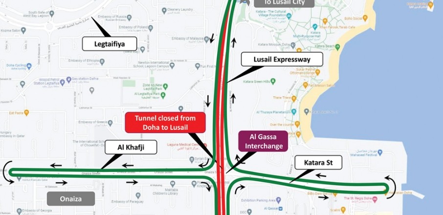 ദോഹ: ലുസൈൽ എക്സ്പ്രസ് വേയിലെ അൽ ഗസ്സാർ ടണൽ ബുധനാഴ്ച പുലർച്ചെ നാല് മണിക്കൂർ അടച്ചിടുമെന്ന് അഷ്ഘൽ അറിയിച്ചു. പൊതുമരാമത്ത് അതോറിറ്റി ഡിസംബർ 29 ന് പുലർച്ചെ 1 മുതൽ 5 വരെ തുരങ്കത്തിന്റെ അറ്റകുറ്റപ്പണികൾ നടത്തും.