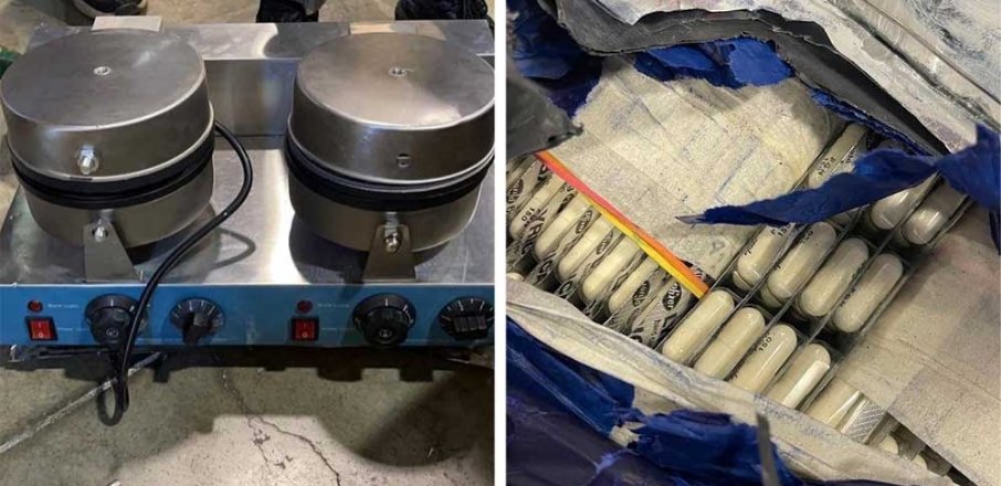 പിടിച്ചെടുത്ത ലിറിക്ക ഗുളികകൾ കേക്ക് മെഷീനിനുള്ളിൽ ഒളിപ്പിച്ച നിലയിലാണ് കണ്ടെത്തിയത്.
