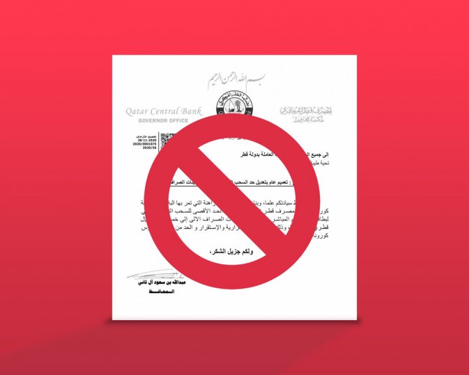 സോഷ്യല് മീഡിയയിലൂടെയാണ് ഖത്തറിലെ എടി.എമ്മുകളില് നിന്ന് ഇനി മുതല് 5,000 റിയാല് മാത്രം പിന്വലിക്കാന് കഴിയൂ എന്ന വാര്ത്ത പ്രചരിച്ചത്. എന്നാല് അത്തരത്തിലൊരു സര്ക്കുലര് ബാങ്ക് ഇറക്കിയിട്ടിലെന്നും അത് വ്യാജമാണെന്നും ക്യൂ.സി.ബി വ്യക്തമാക്കി.
