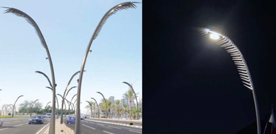 പ്രാദേശിക അസംസ്കൃത വസ്തുക്കൾ ഉപയോഗിച്ചാണ് ലൈറ്റ് തൂണുകൾ പ്രാദേശികമായി നിർമ്മിക്കുന്നത്. ലൈറ്റ് തൂണുകളെ കലാസൃഷ്ടികളാക്കി മാറ്റുന്ന ഖത്തരി ഐഡന്റിറ്റി പ്രതിഫലിപ്പിക്കുന്ന ഈന്തപ്പനയിൽ നിന്നാണ് ഈ ഡിസൈൻ പ്രചോദനം ഉൾക്കൊണ്ടിരിക്കുന്നത്.