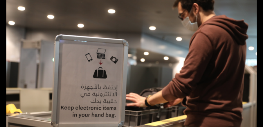 English summary; New technology installed in Hamad international Airport Qatar allows passengers to keep their electronic gadgets in their hand luggage